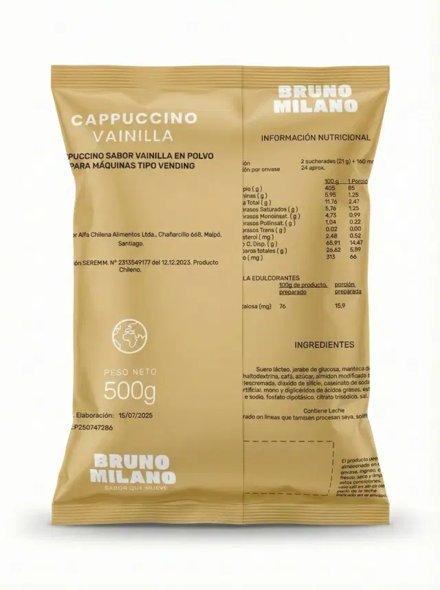 Suero lácteo, jarabe de glucosa, manteca de palma, maltodextrina, café, azúcar, almidón modificado de papa, leche descremada, dióxido de silicio, caseinato de sodio, saborizante artificial, mono y diglicéridos de ácidos grasos, estearoil lactilato de sodio, fosfato dipotásico, citrato trisódico, sal, SUCRALOSA.
